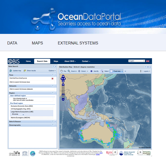 Ocean Biogeographic Information System; globalna baza danych OBIS na temat morskiej różnorodności biologicznej https://obis.org/