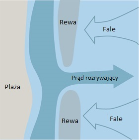 Rys.1 Schemat powstania prądu rozrywającego (http://www.seagrant.umn.edu/coastal_communities/rip)