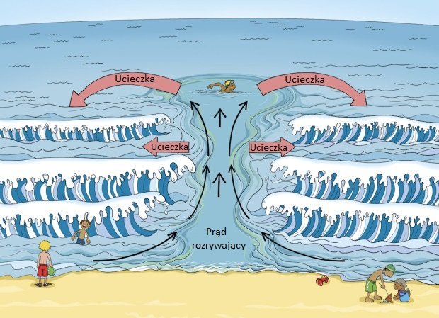 Rys.2 Możliwość ucieczki z prądu rozrywającego (http://gosouthonline.co.za/nsri-giving-advice-on-rip-currents/)Metodyka